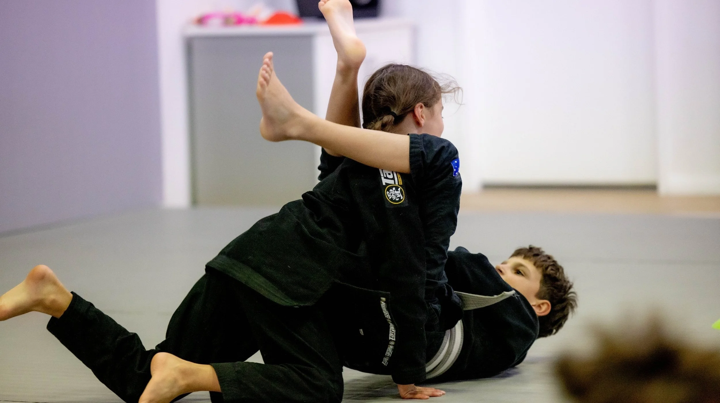 Foundational movement, listening skills and early BJJ techniques taught in a fun, structured way.